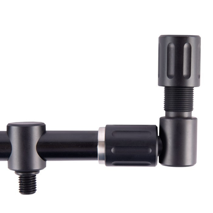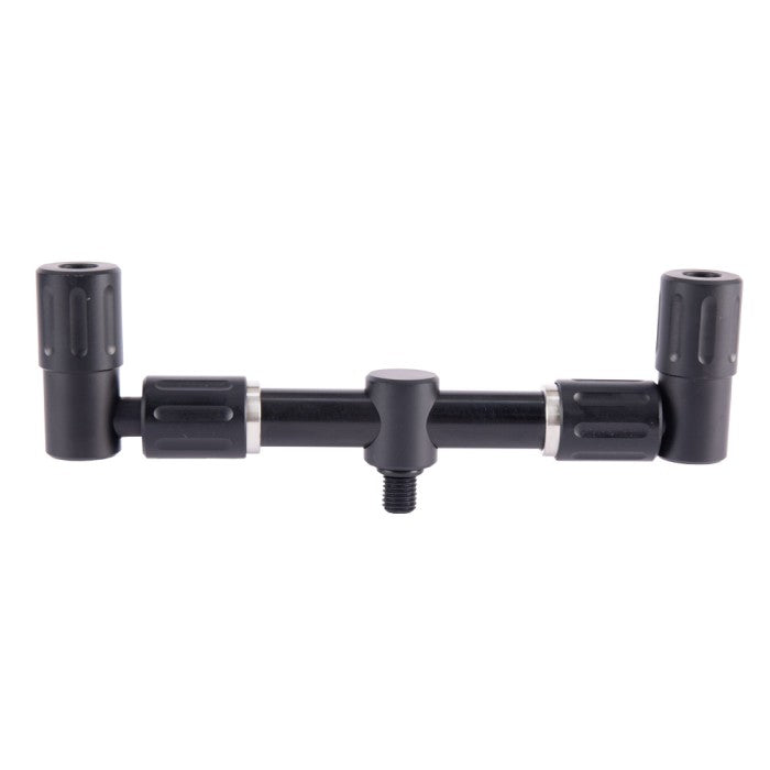 Summit Black Aluminum 2 Rod Adjustable Buzz Bar - Front, The Colosseum range of adjustable buzz bars offers the perfect combination of functionality and style. Manufactured in the UK from high grade Aluminium to our own exacting standards. They are fully adjustable and feature our distinctive Colosseum design alongside our cleverly engineered inner which stops twisting and ensures you can lock the buzz bars solid after adjusting. The twist lock system allows you to easily extend and retract the buzz bar to suit your angling situation, whether it is all rods tight to one spot or spread out. Our buzz bars are a testament to precision engineering and are meticulously constructed from high grade Aluminium. These buzz bars are built to withstand the rigors of fishing, and to meet the highest standards of engineering guaranteeing longevity and performance.