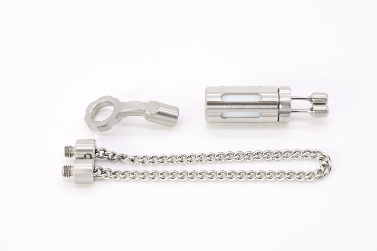 - 7 inch Stainless Steel chain with 2 BA screw fitting and hockey stick included.